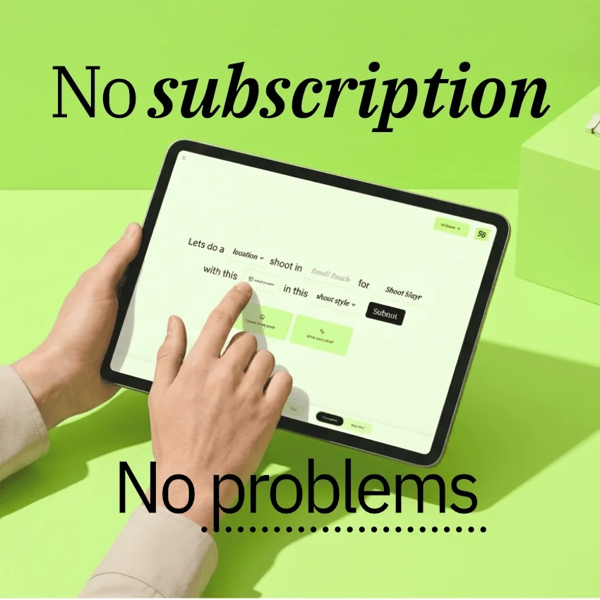 With Shoot Slayr, you aren't paying a monthly fee just to keep the lights on; you're buying a set amount of creative muscle that stays ready whenever you are.